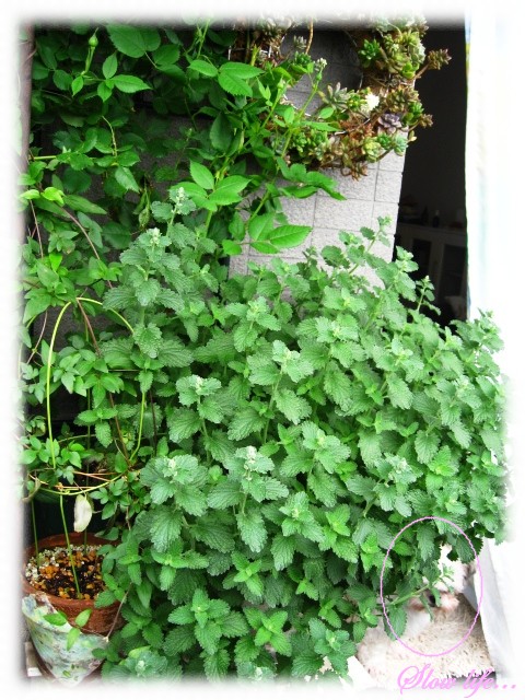 もう何年物だろうと言うぐらい毎年春になると沢山葉を付けるアップルミント・・・たぶん