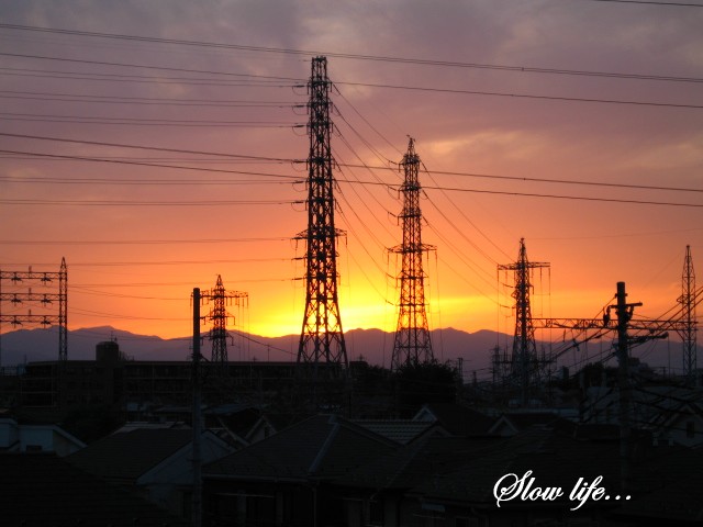 帰ってきたうちの玄関からは、こんなきれいな夕日が